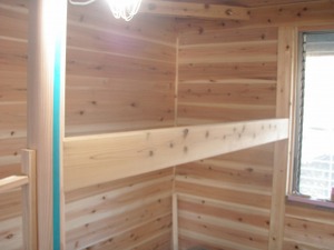 棟梁の内田さんは、子供用の造り付け家具のベットを施工しています。