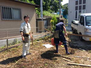 2015年6月24日 未分類 磯子の家 磯子の家の遣り方(建物の位置を土地に正確にだす作業)作業をしました。 ものつくり大学から研修にきている高橋君にも手伝ってもらっています。 親方がお孫さんと同じくらいの年齢との事で、優しく指導してくれています。 これから、天気と相談しながら基礎工事を進めていきます! Tweet