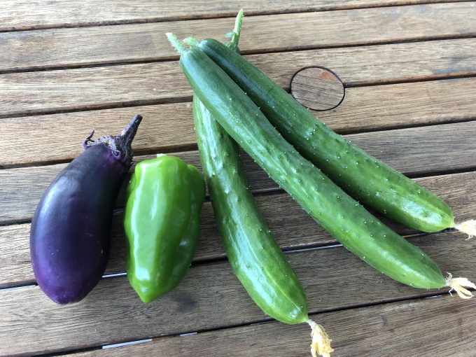2018年6月29日 日常のこと 夏野菜収穫! く今年も、六ツ川の家では、夏のミニ家庭菜園、やってます。 昨年とは、ちょっと変えて、色々な種類を一本ずつ植えてみました。 茄子、胡瓜、ピーマン、ししとう、ズッキーニ、ミニトマト、モロヘイヤ、紫蘇、ゴーヤetc…。 ピーマンや茄子も生りますが、この中で、やはり今年も順調に収穫出来るのは、胡瓜です! 毎日、一本ずつ獲れている感じです。 毎朝のサラダに大活躍です♪ 総務 関尾由起子 Tweet