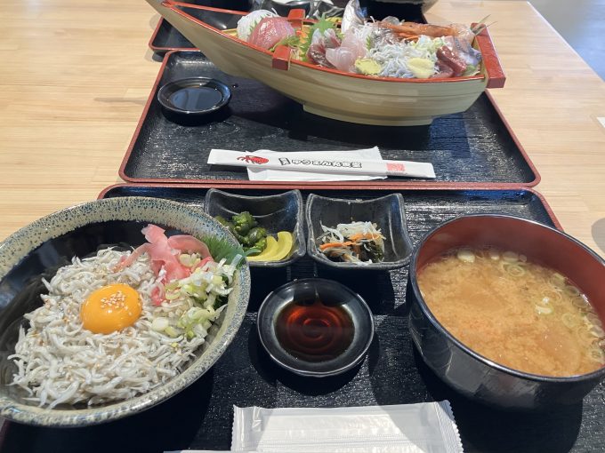 夫のリクエストで、まずは茅ヶ崎の道の駅で、お魚盛りだくさんのお昼ごはんを堪能しました。