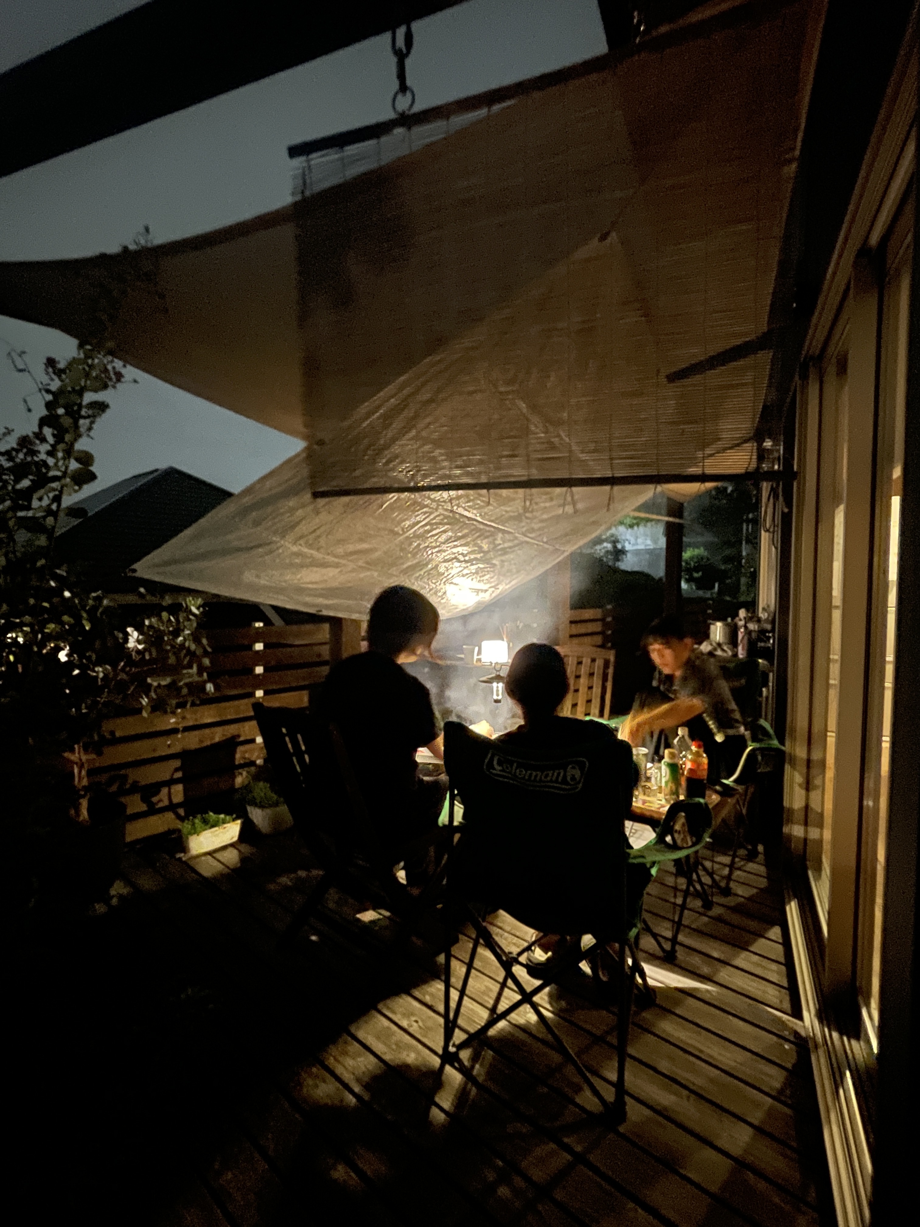 2025年9月21日 家族のこと 雨の日もウッドデッキでBBQ 昨日開催した「秋祭り」でホルモンが余りました。 せっかくの新鮮なホルモンだし、暑さも和らいだので、ウッドデッキでBBQな夕食。 しばらくすると、雨がパラパラ。 雨雲レーダーを見ると雨雲が間近に迫っています。 慌てて雨除けタープを張って難を逃れ、平和な火のある夕食を楽しみました。 余りものですが、美味しく頂きました。 Tweet