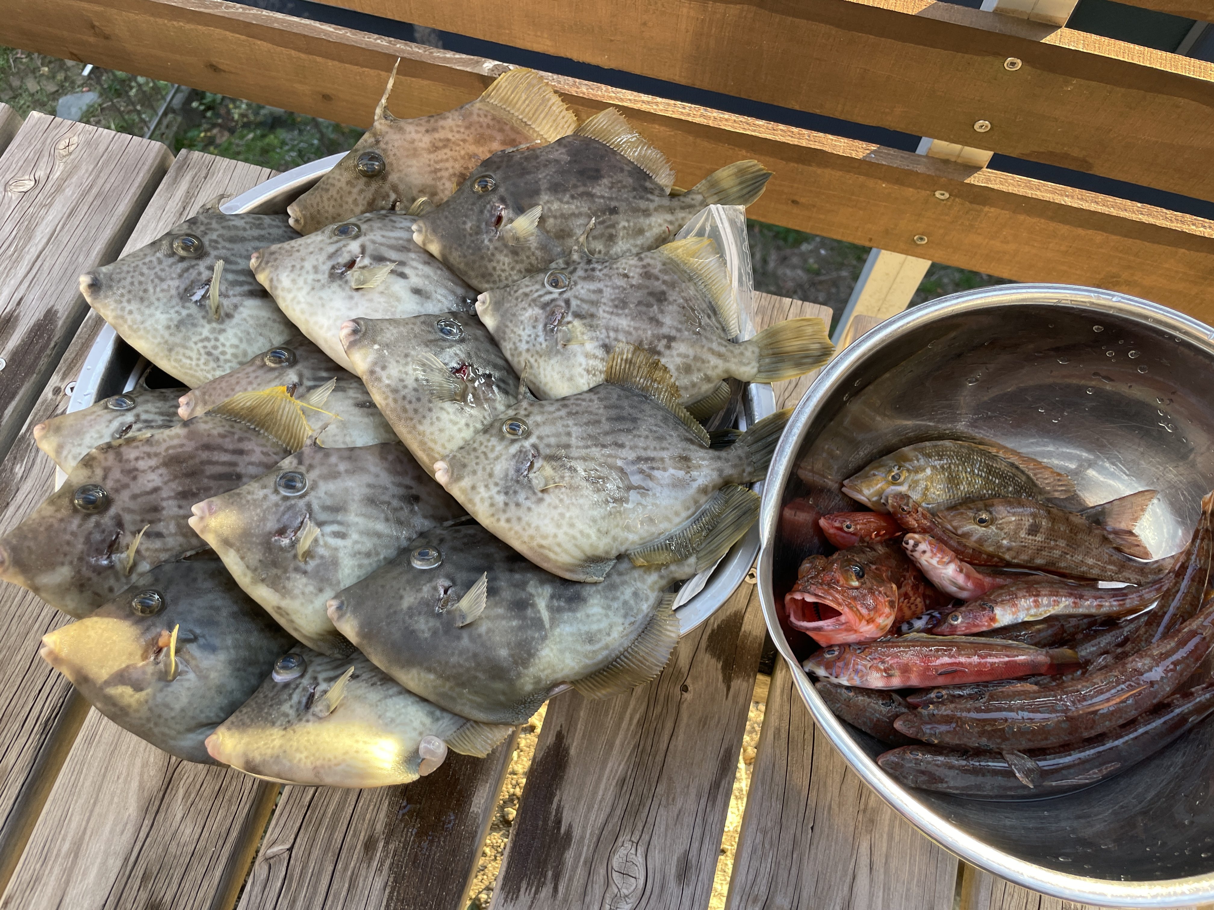 本日はお休みを頂いて、長女と共に工務店の仲間でカワハギ釣り。