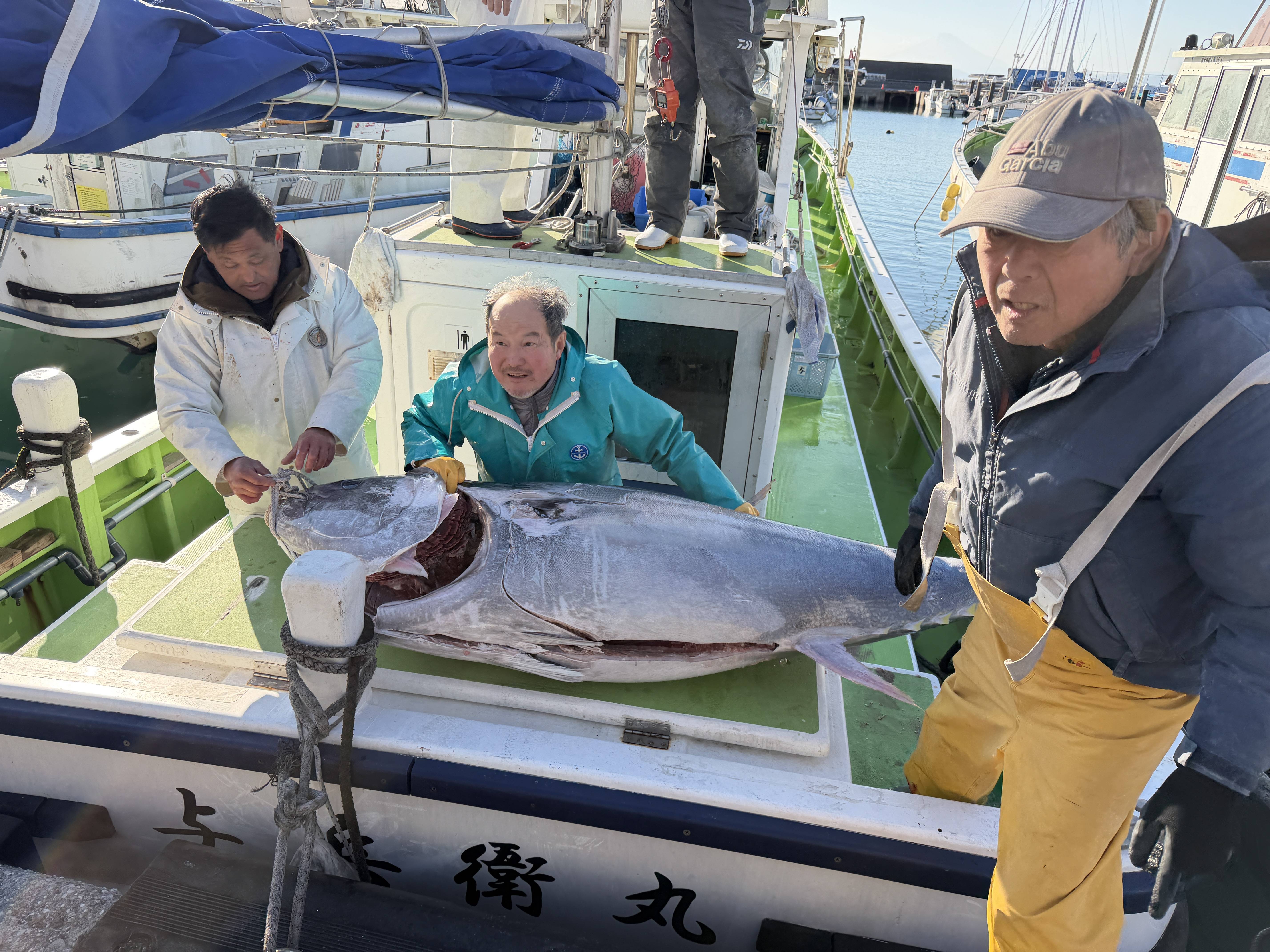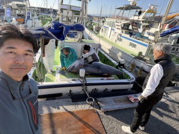 帰り道の道中に、山田建設山田会長のお友達から「180kgの本マグロを釣り上げた」との連絡がはいりました。